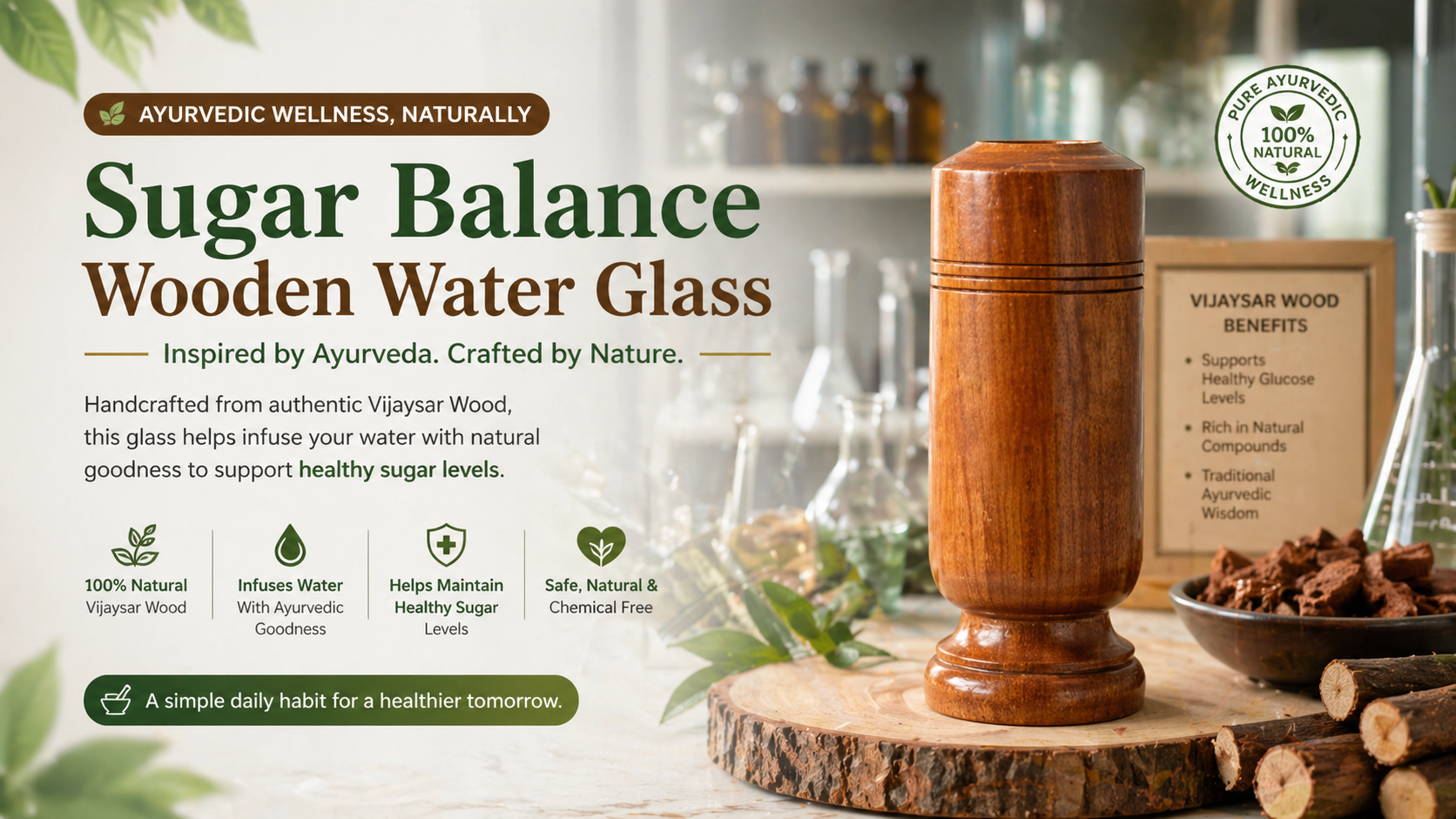 Sugarcare Balance Vijaysar Wooden Glass | 100% Natural Ayurvedic Blood Sugar Control